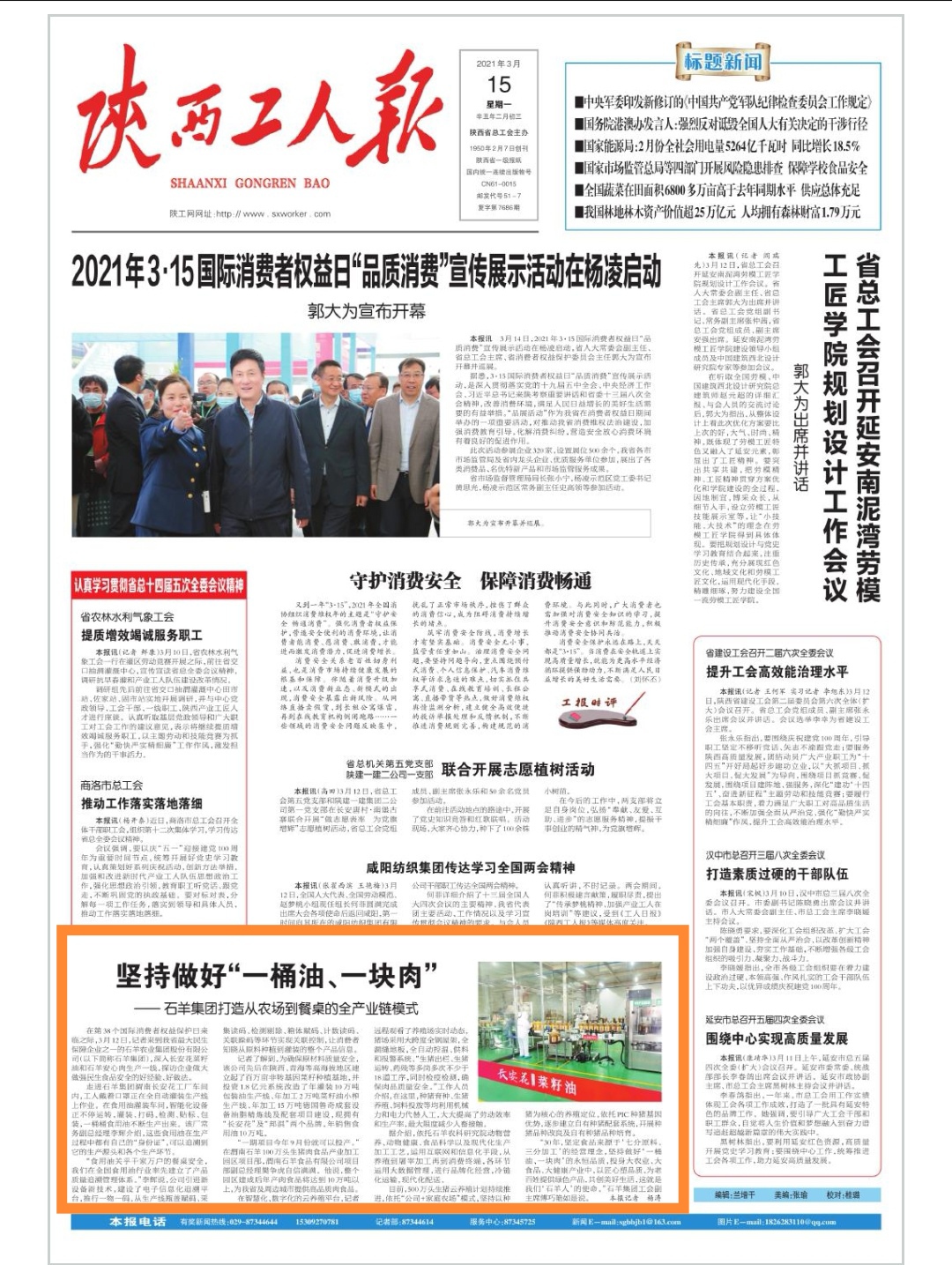 第39個國際消費者權益保護日前夕,陜西日報、西部網、陜西...